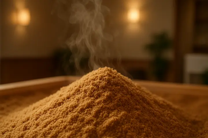酵素風呂の最大の特徴は、人工的な熱源を使わず、微生物が米ぬかなどを分解する際に発生させる「発酵熱」を利用している点です。